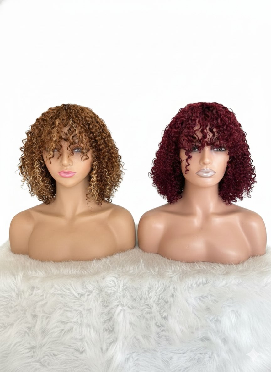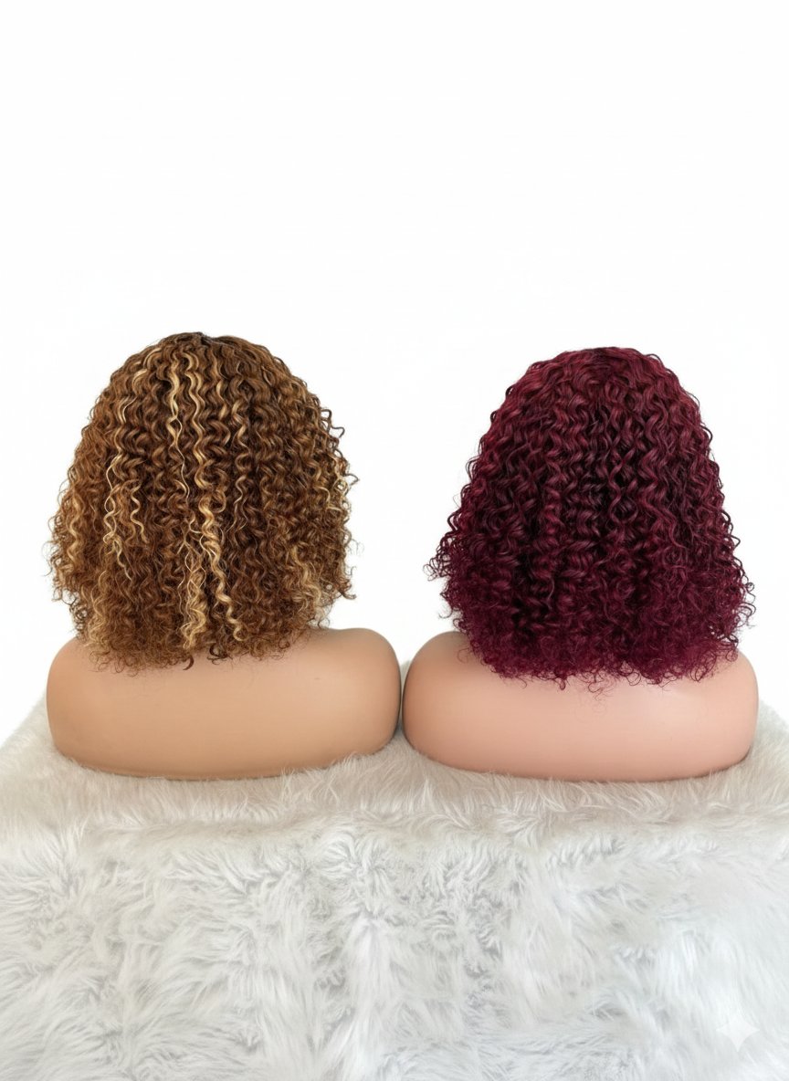 100% human hair 13×4 curly wig highlights brown and Burgundy .12 inch,14 inch